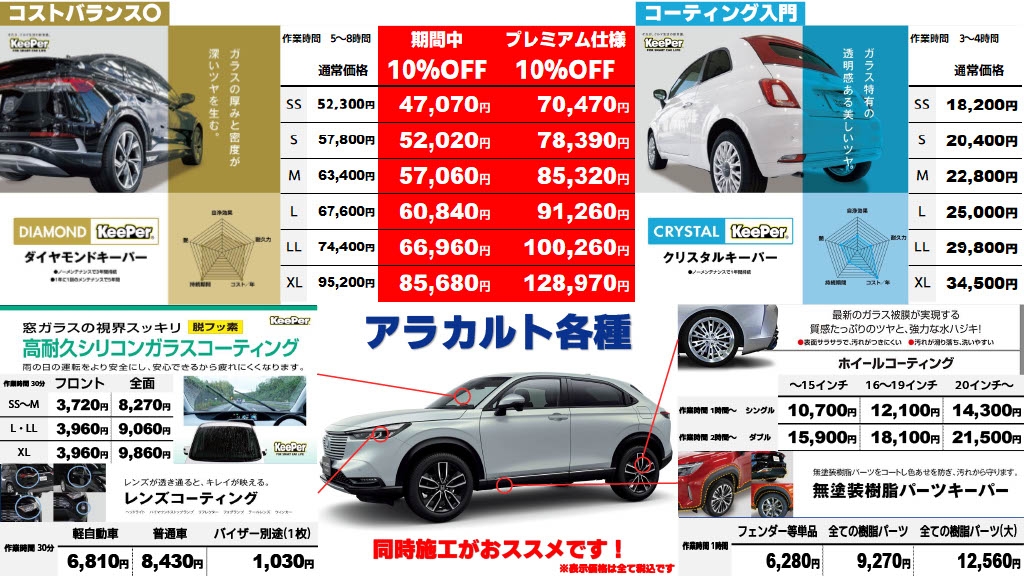 さらに新車施工のお客様であれば、合計10%OFFになります。