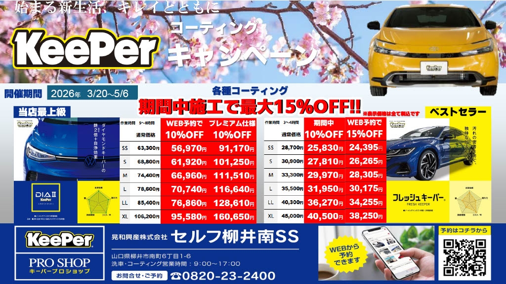 セルフのスタンドではございますが、この度よりKeePerPROSHOPとして洗車・コーティングのできるお店としてReスタートします。