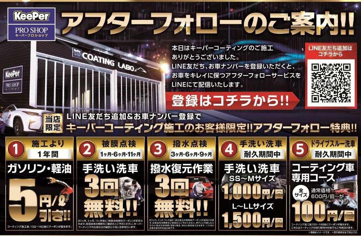 当店ではカーコーティング、手洗い洗車、セルフ洗車、車のメンテナンス等ご提案させて頂いております。