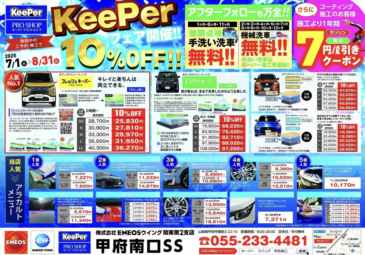 CMでお馴染み、キーパーコーティングがなんと10%OFF!!