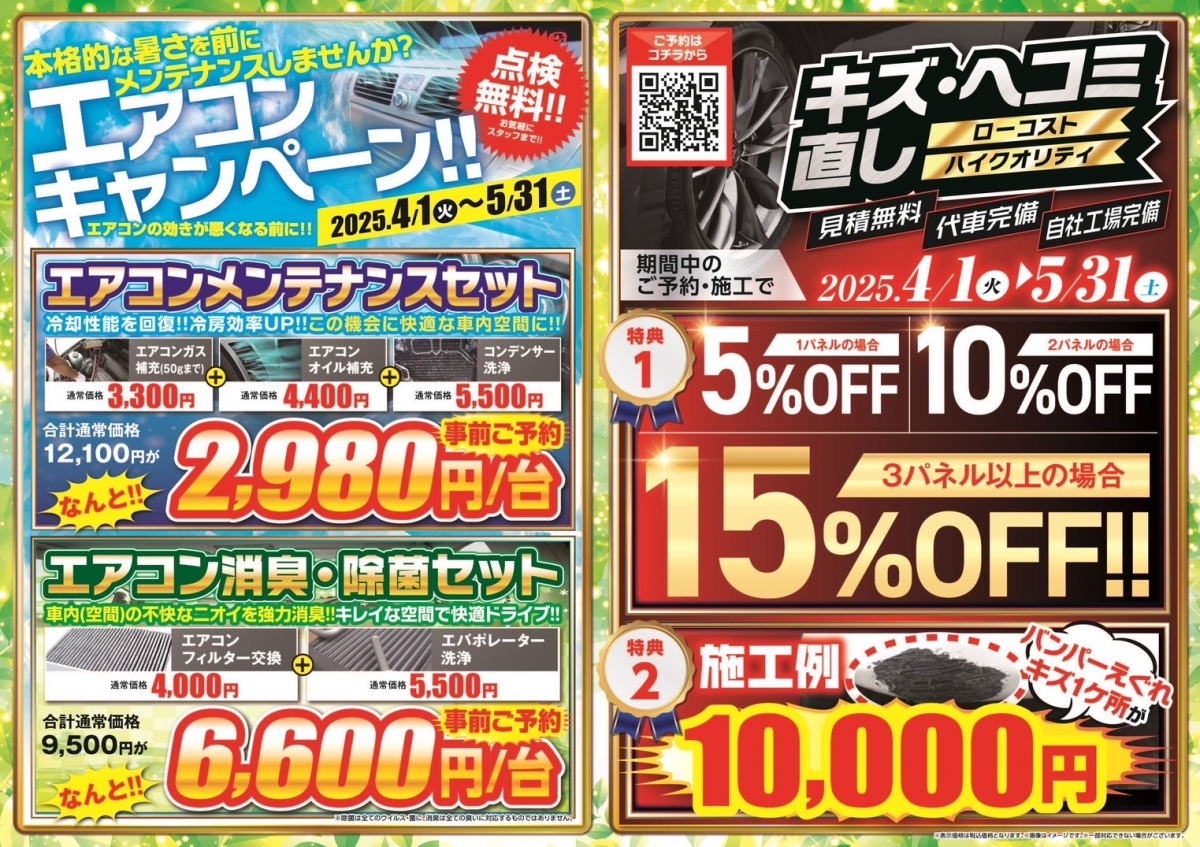 電話などで判断しかねる場合一緒にお車を見ながら最適なコースをご提案させていただきます。