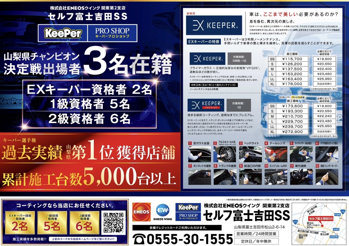 EXキーパーは新車用コーティングのため納車1ヶ月以降もしくは