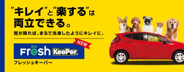 フレッシュキーパーは、汚れの密着を防ぐ独特な防汚能力を持ち、ホコリが降り積もっても塗装表面には密着せず、自然の雨が降れば元々持っている撥水力で、雨と一緒に汚れが流れ落ち、まるで洗車をしたかのようにキレイになります。