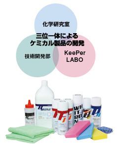キーパーブランドの開発会社であるKeePer技研(株)は、独自のケミカル製品を開発する化学研究室、新たな洗車・カーコーティングのスキルを生み出す技術開発部、そしてその実践現場である「KeePer LABO(キーパーラボ)」が、三位一体となる開発体制を築いています。