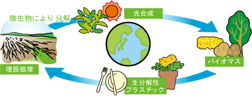 また「生分解"性"」とは、最終的に水と二酸化炭素に分解する達成率およびそのスピードの良し悪しを表すものです。