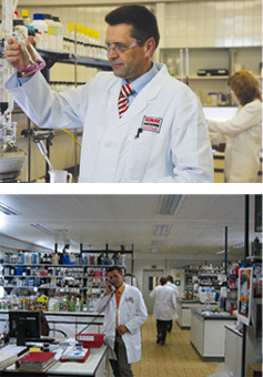 そうして新開発されたケミカルは、その製造過程にあった複数の選択肢の中から最適な製造工場を決定し、その製造方法を化学研究室代表が指導します。