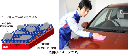 ピュアキーパーは愛車が絶対汚れない「魔法のバリア」ではありません。しかし、汚れが着いてもコーティング膜内に浸透せず、簡単に落ちるのが特性です。