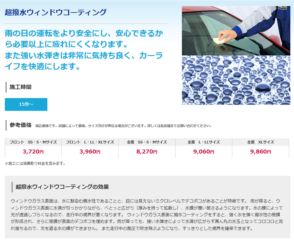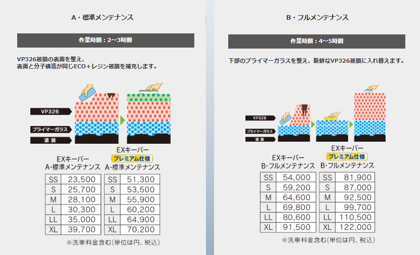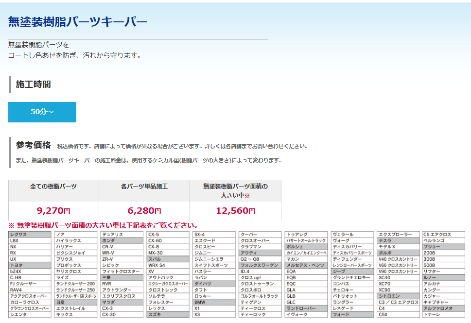 当店がお取り扱いしているキーパーコーティングメニューは、