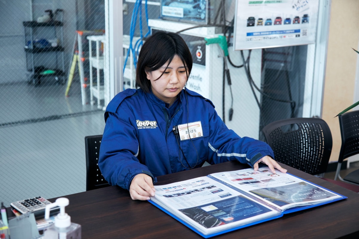 受付時車の状態を確認させて頂き、お勧めのコースやオプションなどを説明させていただきます。