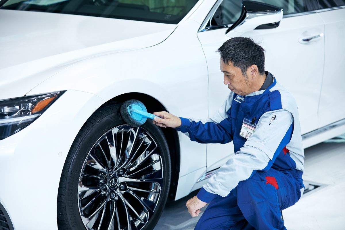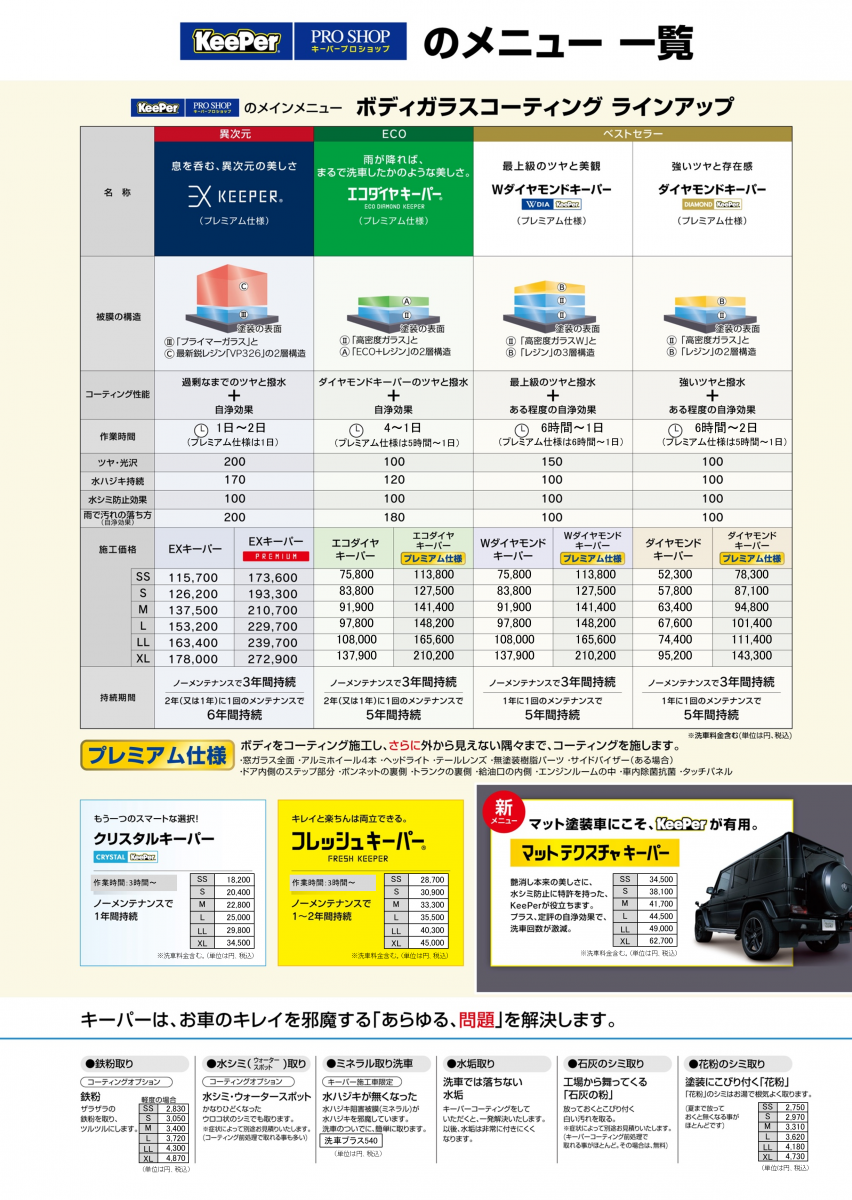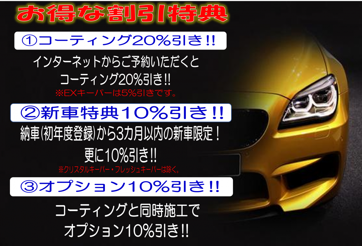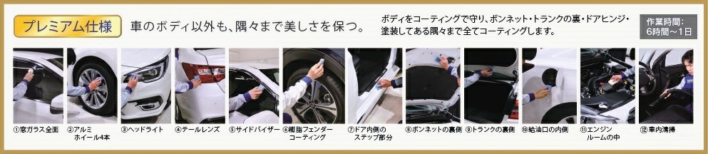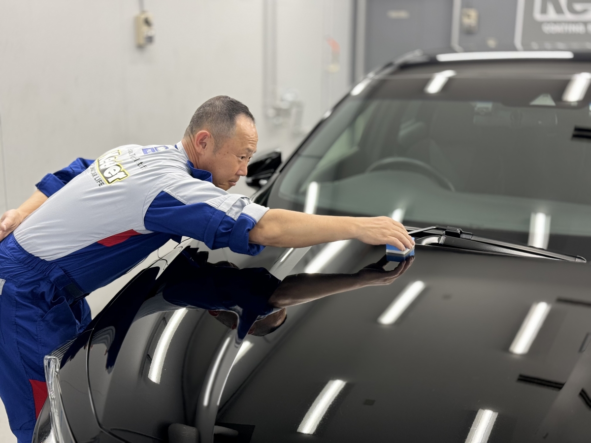 オプションがある場合はガラスのフッ素コーティングやホイールのコーティングなども行います。