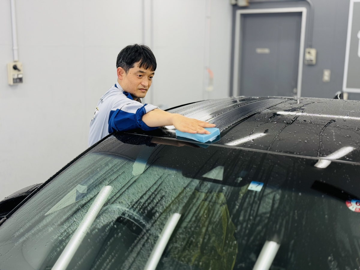その後、洗車では落としきれない汚れや、水垢、鉄粉などを落としてコーティングの準備をしていきます。