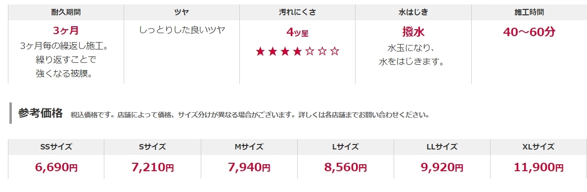 お車のサイズにより施工価格が変わります。下記のリンクより愛車のサイズが検索できます!