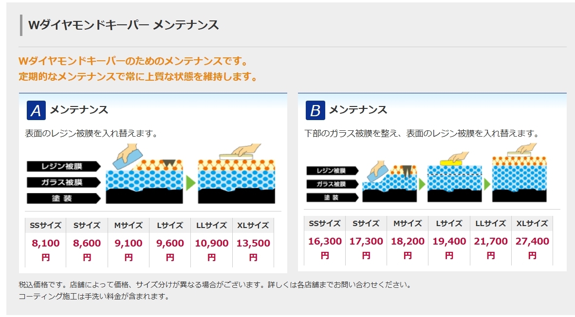 ダブルダイヤキーパーは、 高密度ガラス被膜だけでも2層、 キチンと硬化させながら施工します。 (ガラス、ガラス、レジン)の3層構造です。