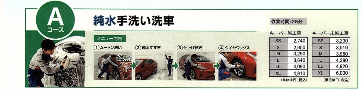 ※ECOプラスダイヤモンドキーパーは施工後1週間から洗車ができます。1ヶ月後から自動洗車機(スポンジブラシ洗車機)が使えます。