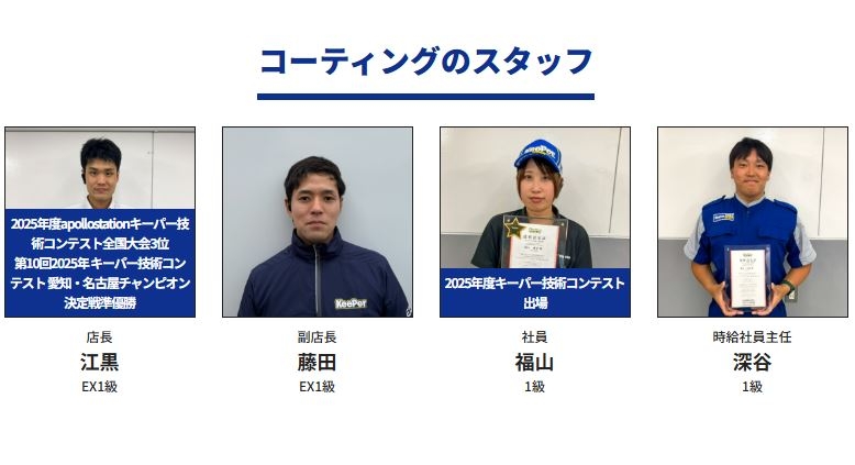 キーパープロショップセルフ鶴舞店です。当店のキーパーコーティングはプロの実力で一台一台丁寧に仕上げます!コーティングには様々な技術と知識を組み合わせる必要があります。実はキーパーは様々なコンテストを開...