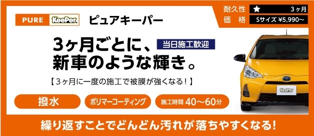 W ダイヤモンドキーパーは、メンテナンスをせず、洗車だけで3 年間持続目安のプランと1年に1 回のメンテナンスを行って5 年間持続目安のプランのどちらでもお選びいただけます。