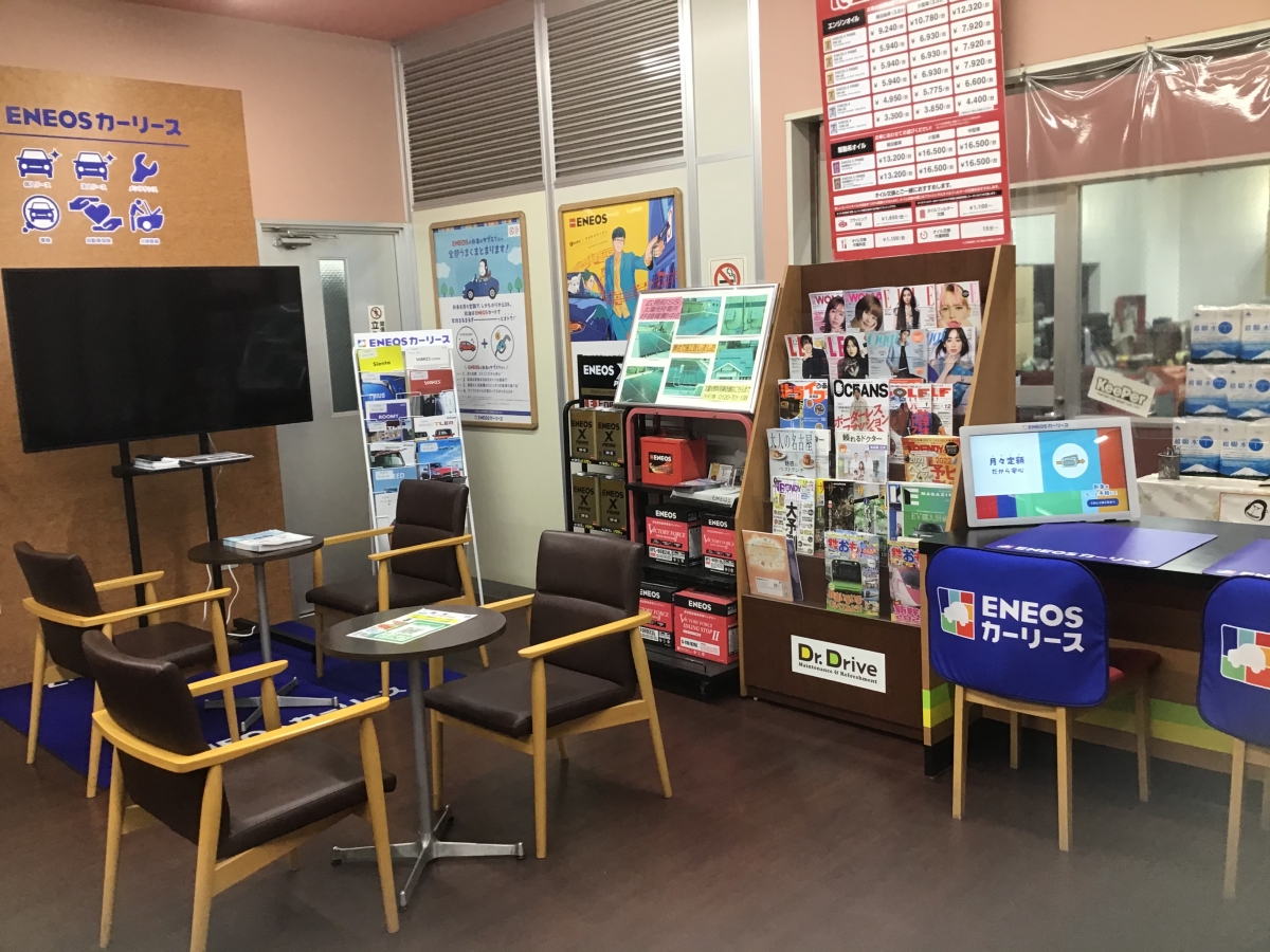 店内サービスルームになります。洗車・コーティング施工で、お待ちになる場合でも雑誌、テレビがございますので、ごゆっくりお待ちしていただけます。また店内は完全分煙な為、おタバコを吸うお客さまも吸わないお客様も安心して快適にお過ごしいただけます。