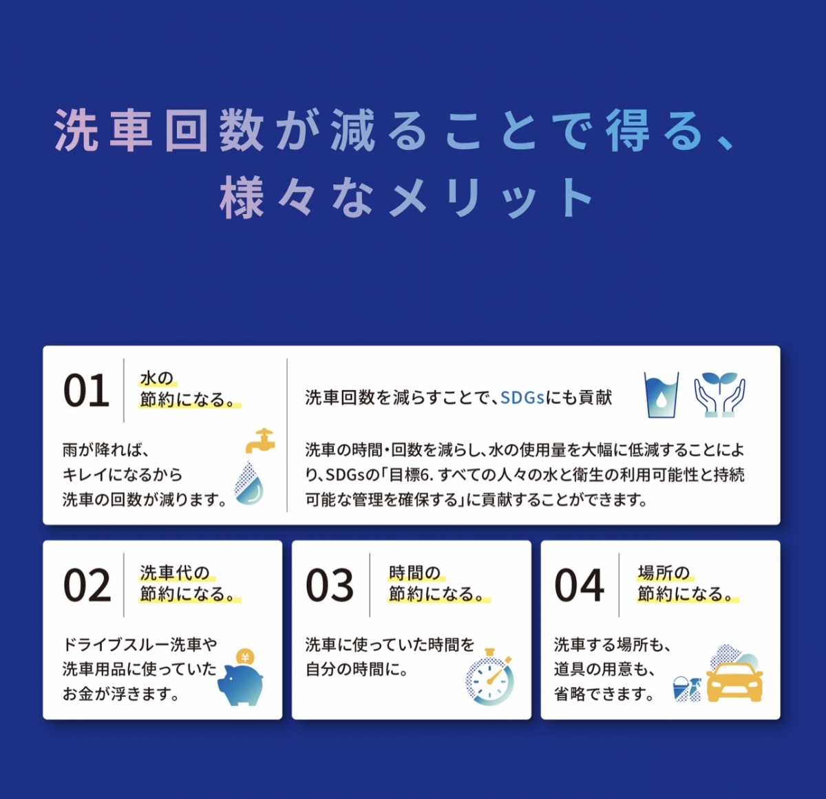 コーティング被膜を一切削らずミネラル膜のみを綺麗に落とし、本来のツヤ・水弾きを戻せます!