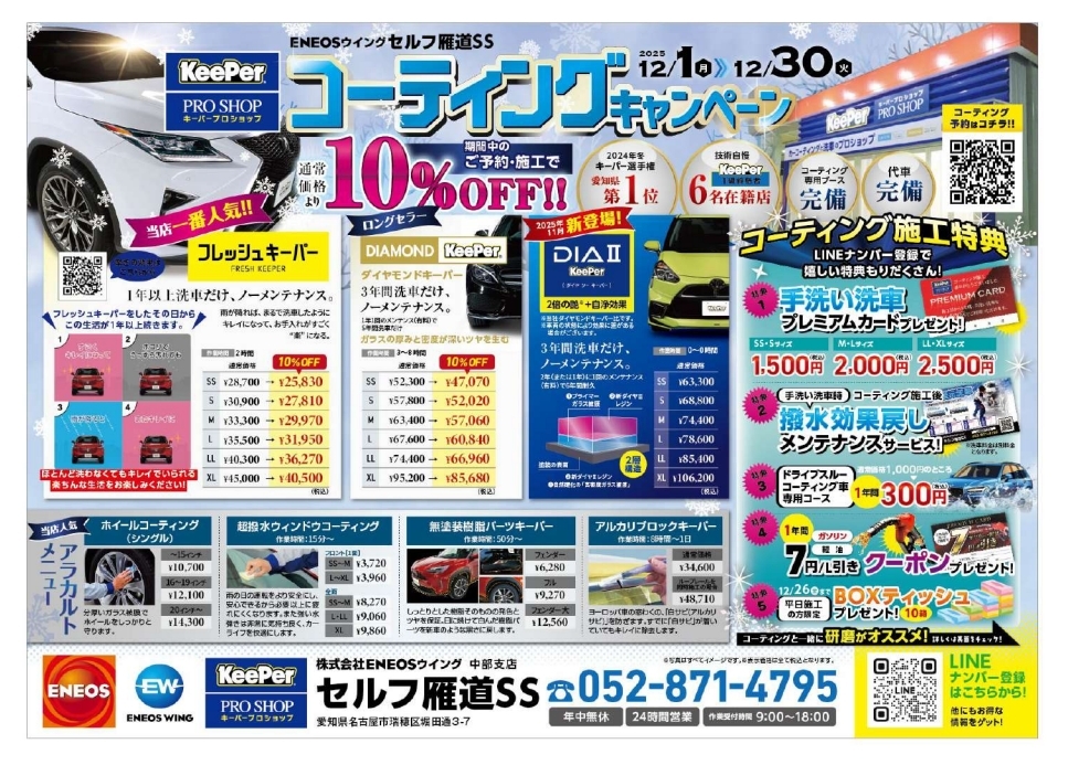 冬の車トラブル対策とセルフ雁道SSのコーティングサービス❄️