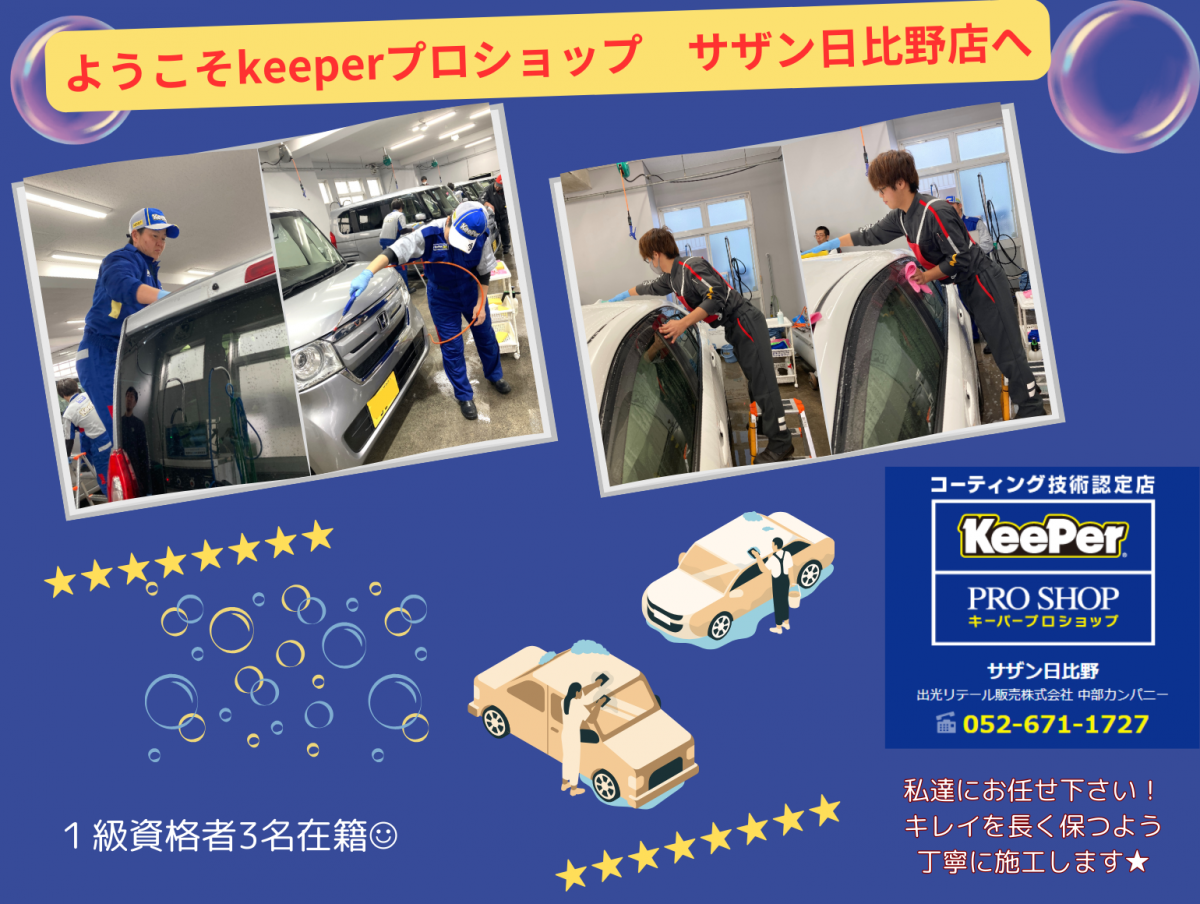 - セルフ日比野SSは車検の速太郎併設のキーパープロショップ認定店です。