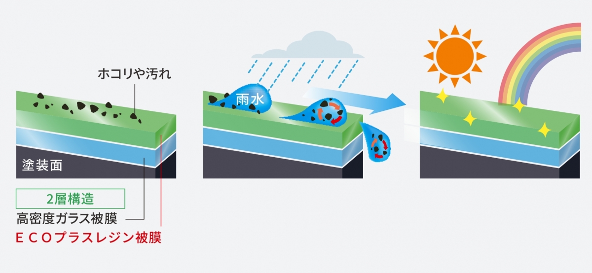 自然の雨で汚れが落ちる効果 深いツヤを生む【高密度ガラス被膜】