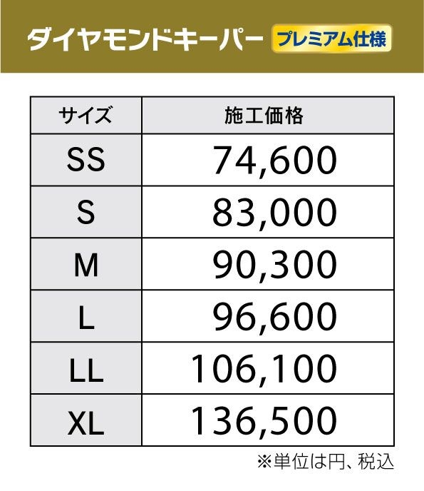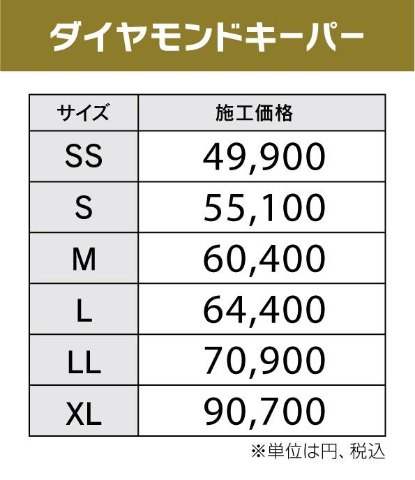 ダイヤモンドキーパーサイズ別施工料金表はコチラ!