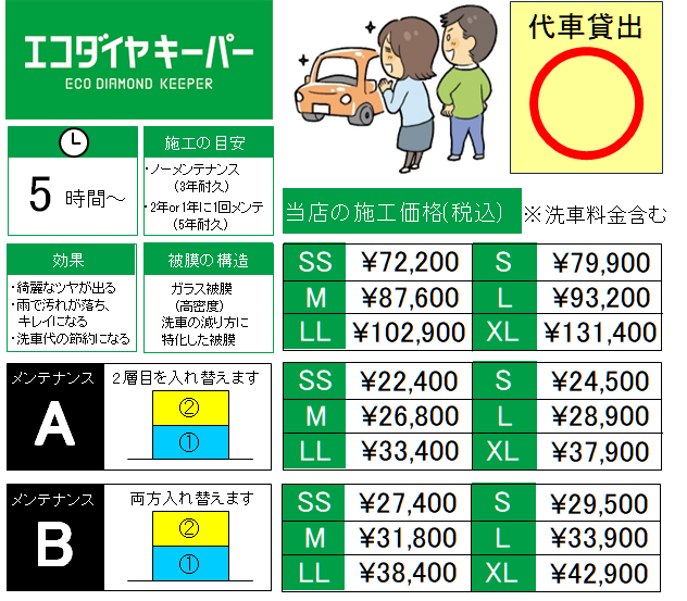 お車を『もっと長く、もっと大切に』されたいお客様におすすめの『Wダイヤキーパー(強撥水・3年or5年耐久)』です!!