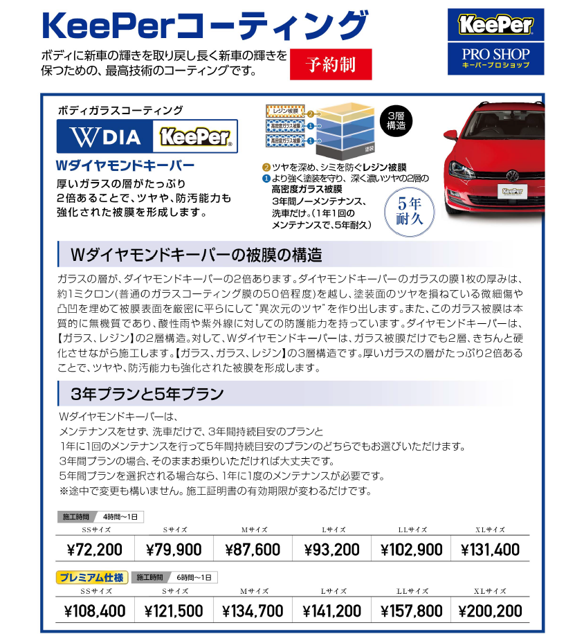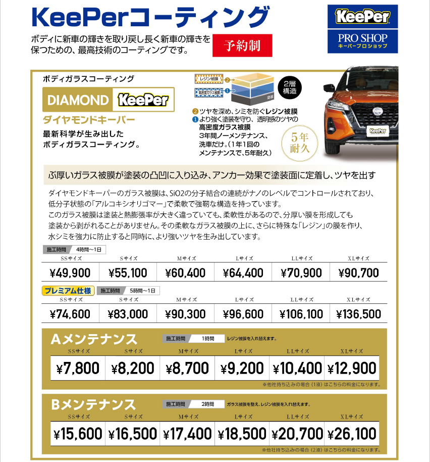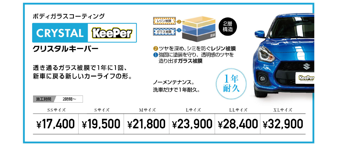 こちらの2つは1年タイプのコーティングです。 キーパーご利用経験がないお客様や、1年毎にきっちりリフレッシュしたい、 といったお客様に選ばれています。