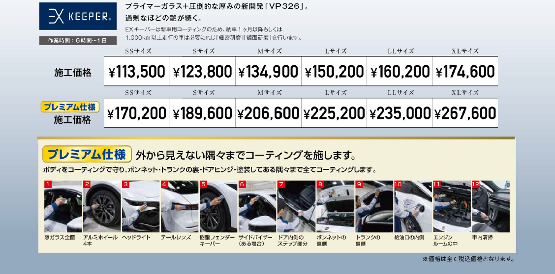 キーパーの最上級コーティング、EXキーパーです。 新車だけではなく、今お乗りのお車にも施工することができますので、ぜひご相談下さい!! キーパーコーティング史上最上級の圧倒的な艶と水弾きを体感されたお客様からは、 「他のコーティングができなくなるね」というお声を頂いています。
