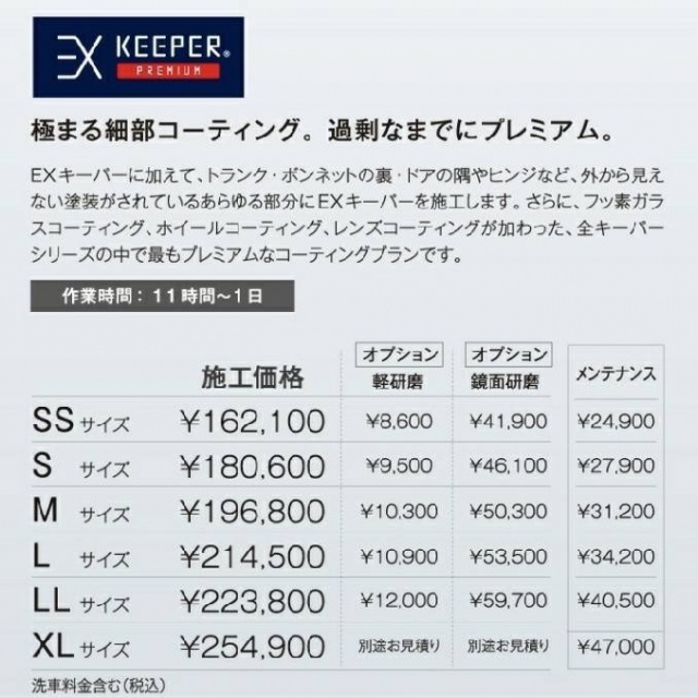 ガラスのような透明感のある被膜は、1回の施工で1年愛車を守ります。