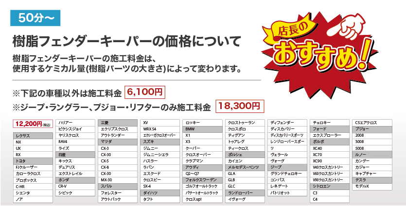 電話などで判断しかねる場合、ご一緒にお車を見ながら、最適なコースをご案内させていただきます。