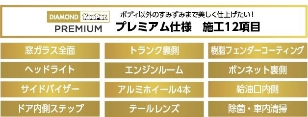 W ダイヤモンドキーパーの施工内容に追加して、上記の部分もあわせてコーティングいたし ます。すみずみまで美しく仕上げたい方に! ※施工時間は6時間~1 日になります。