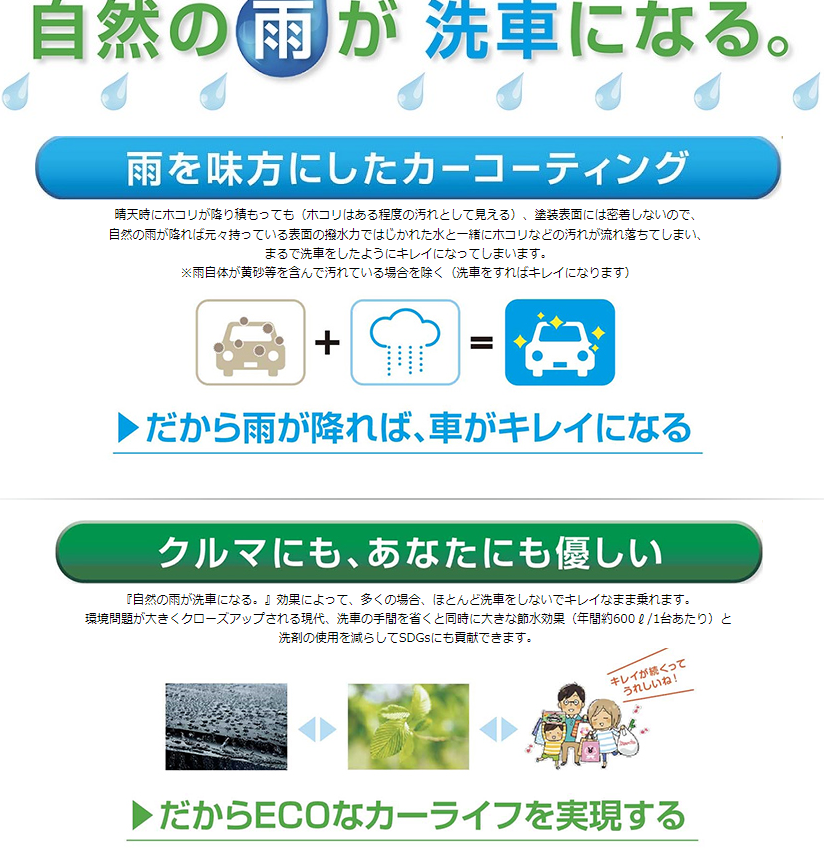 視界スッキリ!! 気持ちいいぐらいの水はじき。フッ素ガラスコーティング