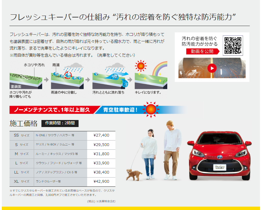新車にピッタリのキーパーコーティング。新車時の塗装を長くキレイに保ちます。 今現在お乗りのお車にも、もちろんお勧めです。