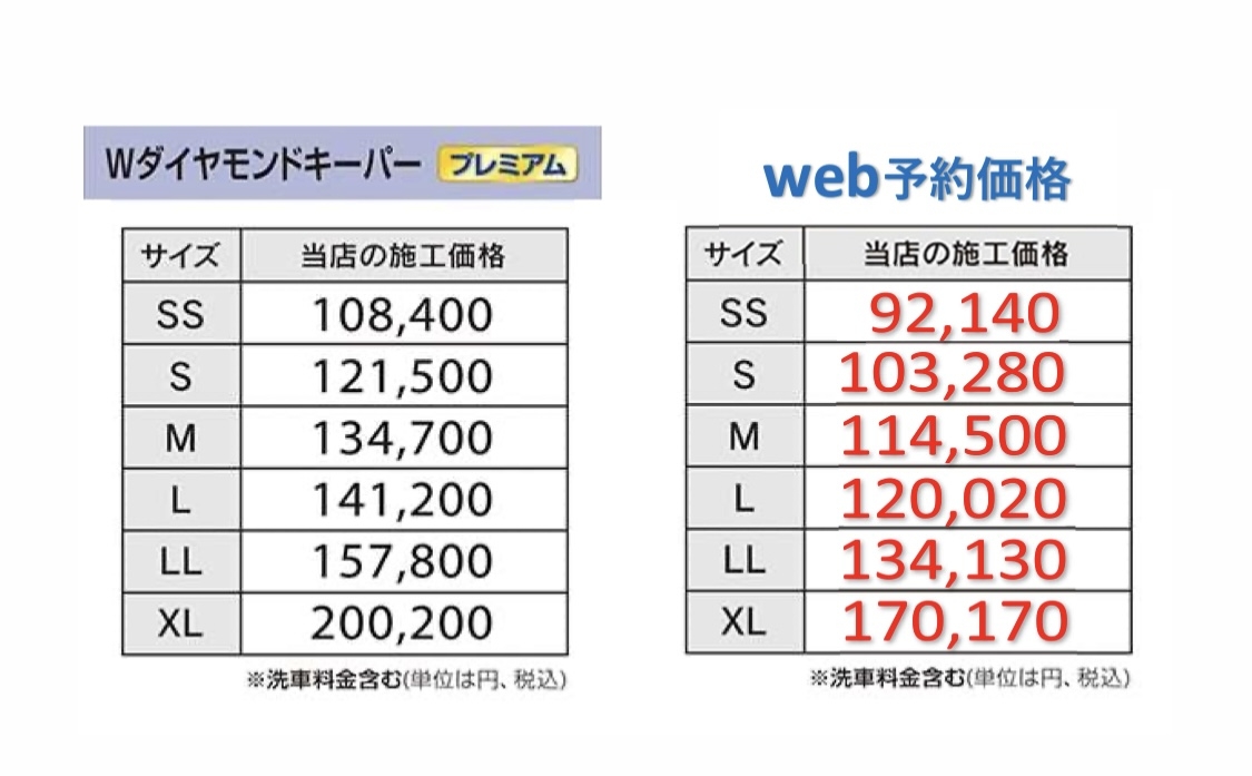 コーティング施工・洗車価格はサイズにより異なります。マイカーのサイズはこちらから検索出来ます↓↓↓↓