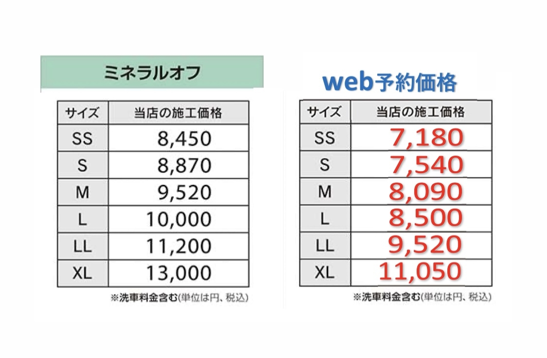 ※機械洗車、室内清掃単品の電話・WEB予約は受け付けておりません