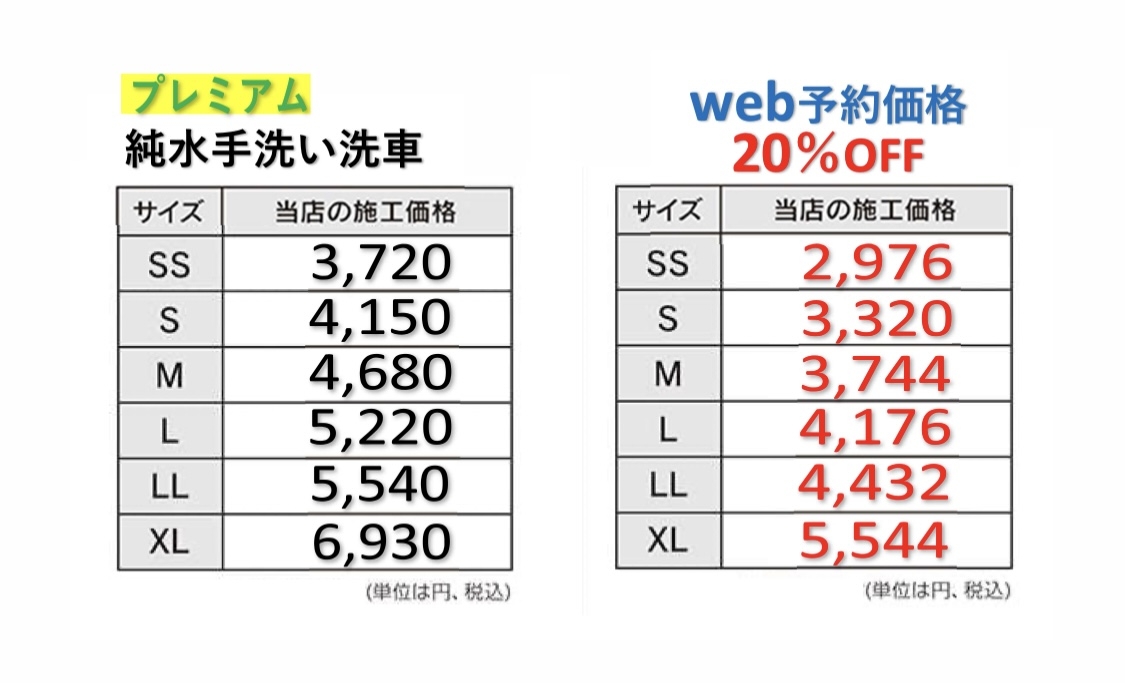 純水手洗い・純水プレミアムの一般車価格を値下げしました!