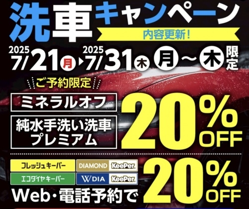 より多くのお客様へサービスをご提供するため、手洗い洗車やコーティング施工は事前予約(電話・ネット)を優先とさせて頂きます