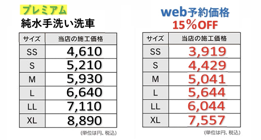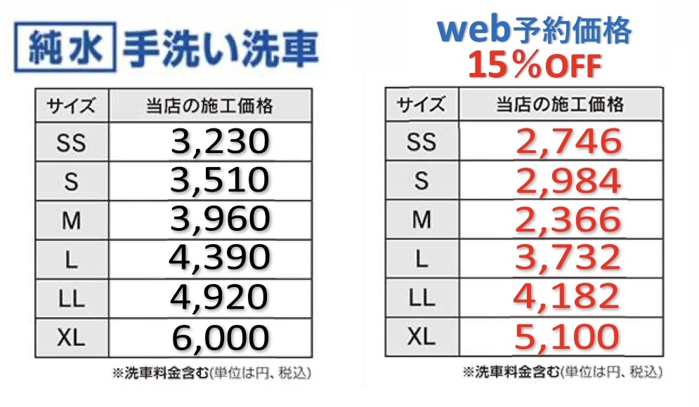 純水手洗い・純水プレミアムの一般車価格を値下げしました!