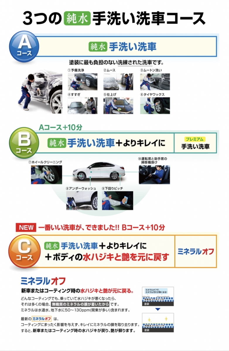 【純水手洗い洗車メニュー内容】
