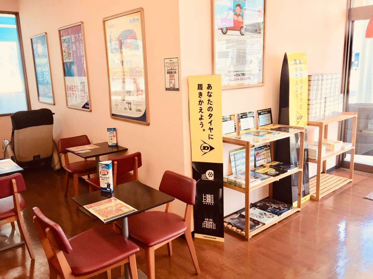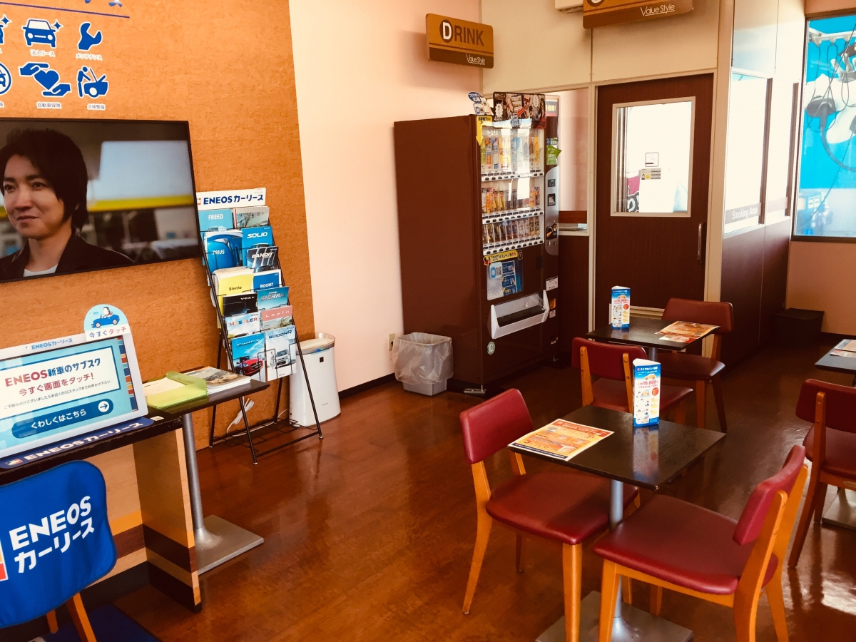 店内も広々していますので、洗車や整備などでお待ちの際などは ごゆっくりおくつろぎ下さいませ。
