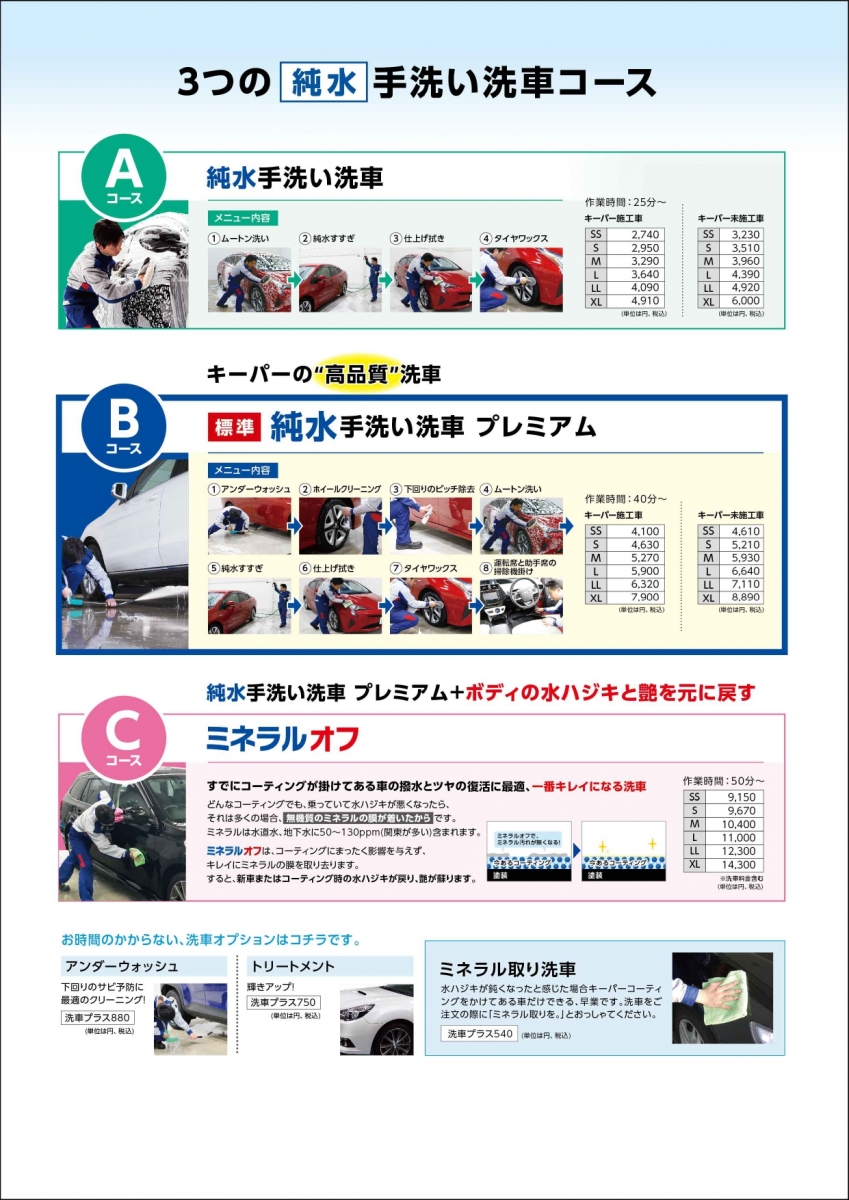 カーコーティングや手洗い洗車、ドライブスルー洗車機完備!