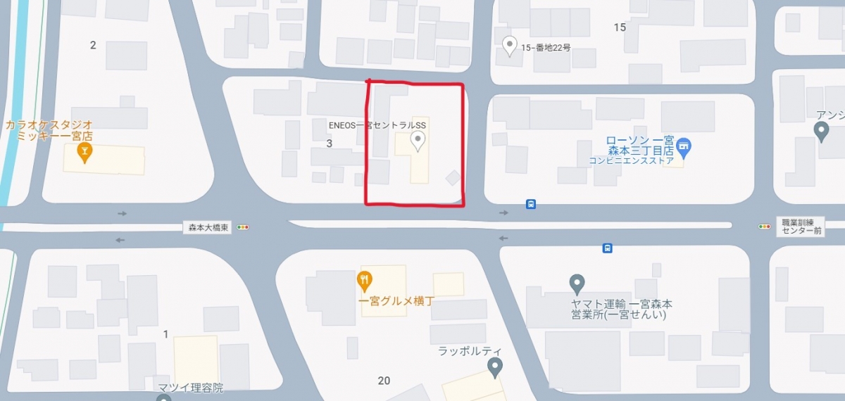 一宮市内・森本大橋東の交差点より東へ30mほどの位置にあります。