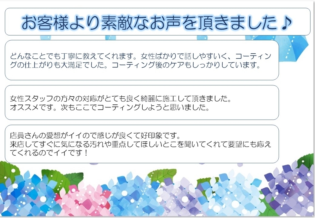大切なお車だからこそ綺麗に長く乗っていただきたいと思います!