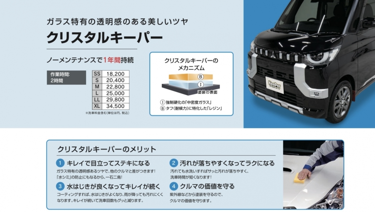 さらに、まるで洗車をしたようにキレイになってしまう♪そんな実感が得られるコーティングです。