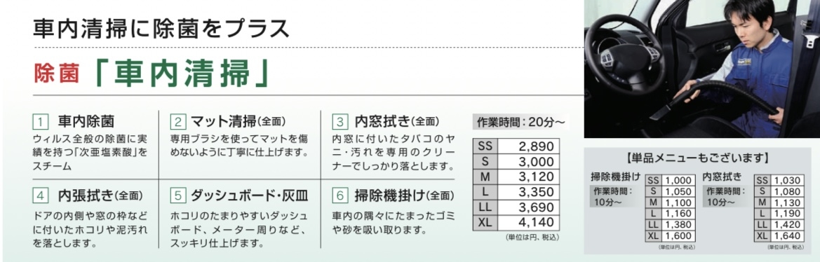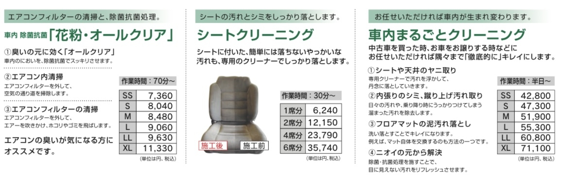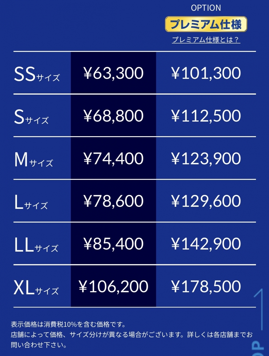 ※XLサイズの料金については店舗にご確認の程お願いします。