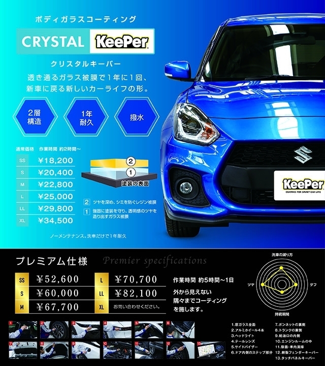 3層コーティングのダブルダイヤキーパーは新車に相性抜群のキーパーコーティング。