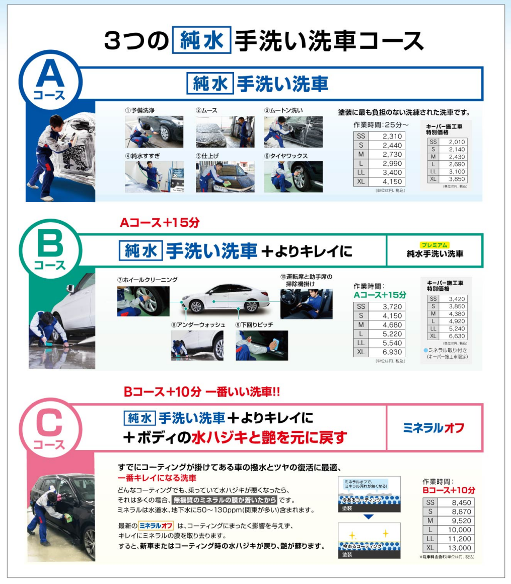 クリスタルキーパーサイズ別施工料金表はコチラ!