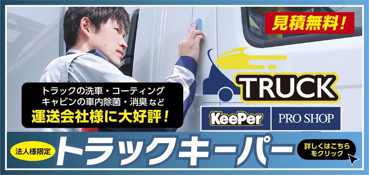 物流を支えるトラックキーパーも 大好評!大型トラック専用の 作業台も完備!!運送会社様の 看板でもある自慢のトラックをキーパーコーティングでピッカピカにします!