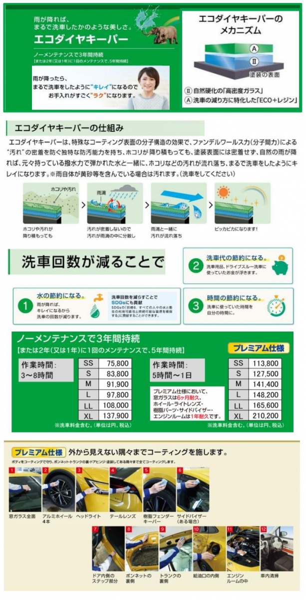 ・お車の新車時の美しさを長くキープ致します。